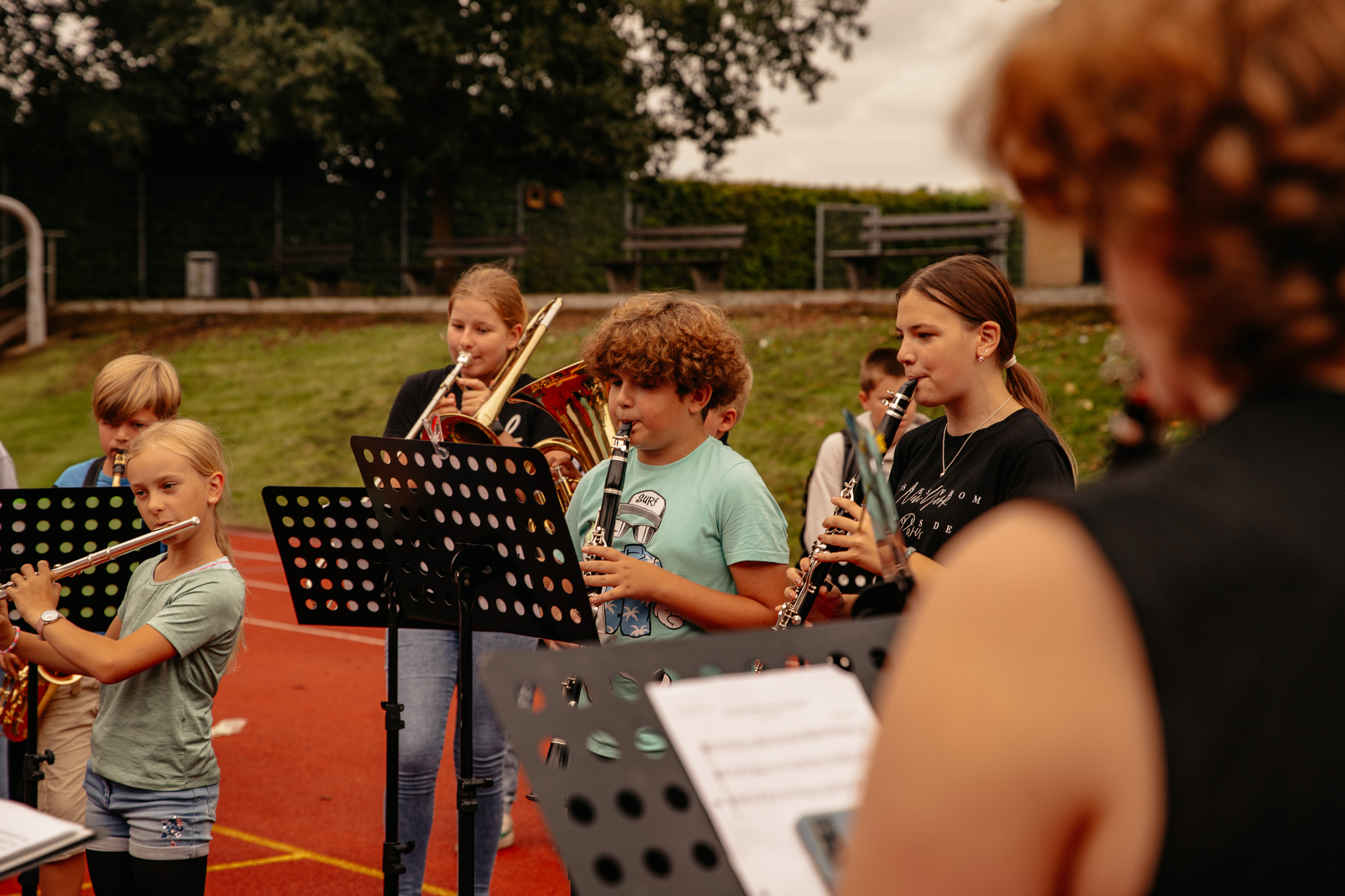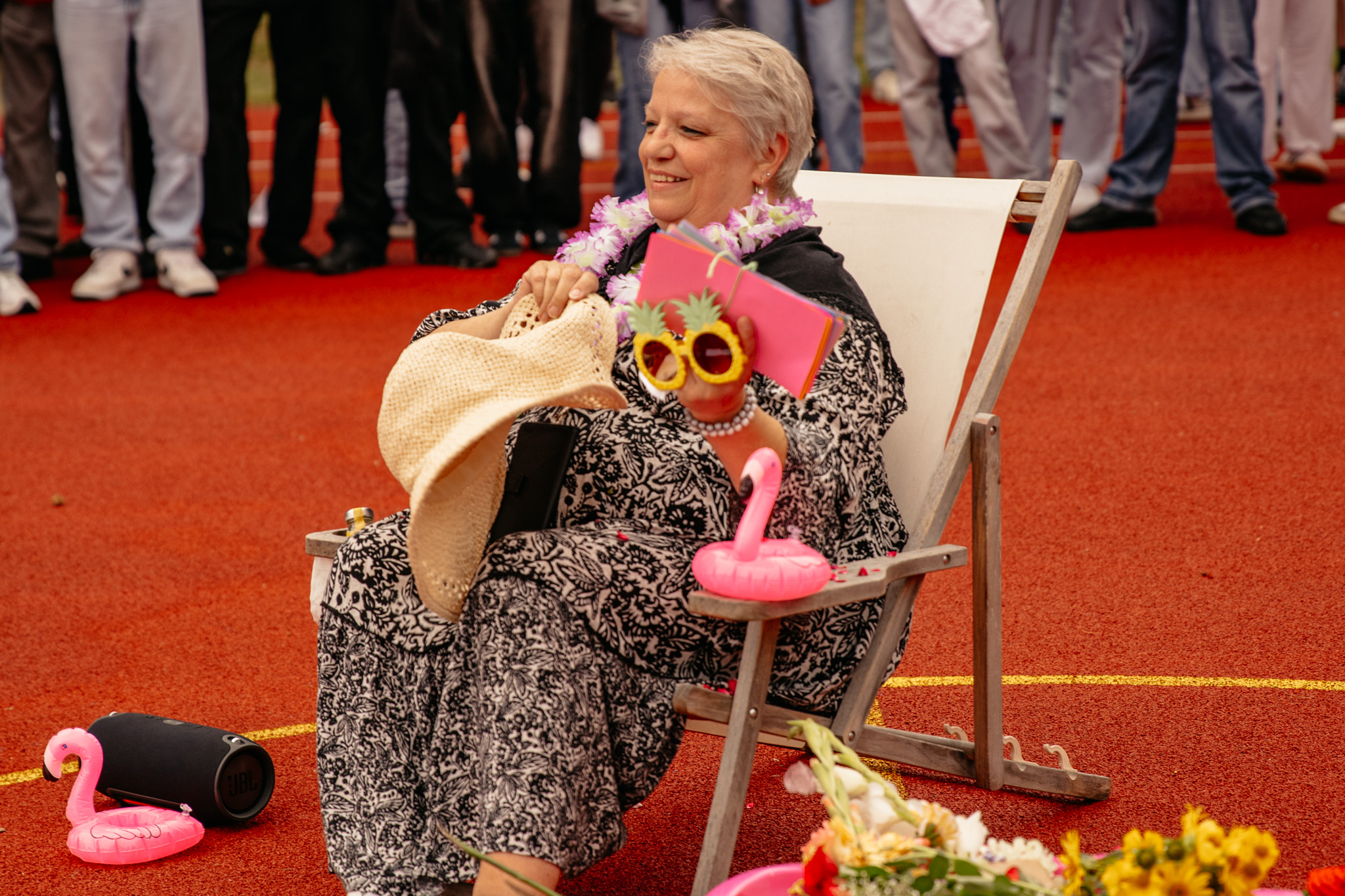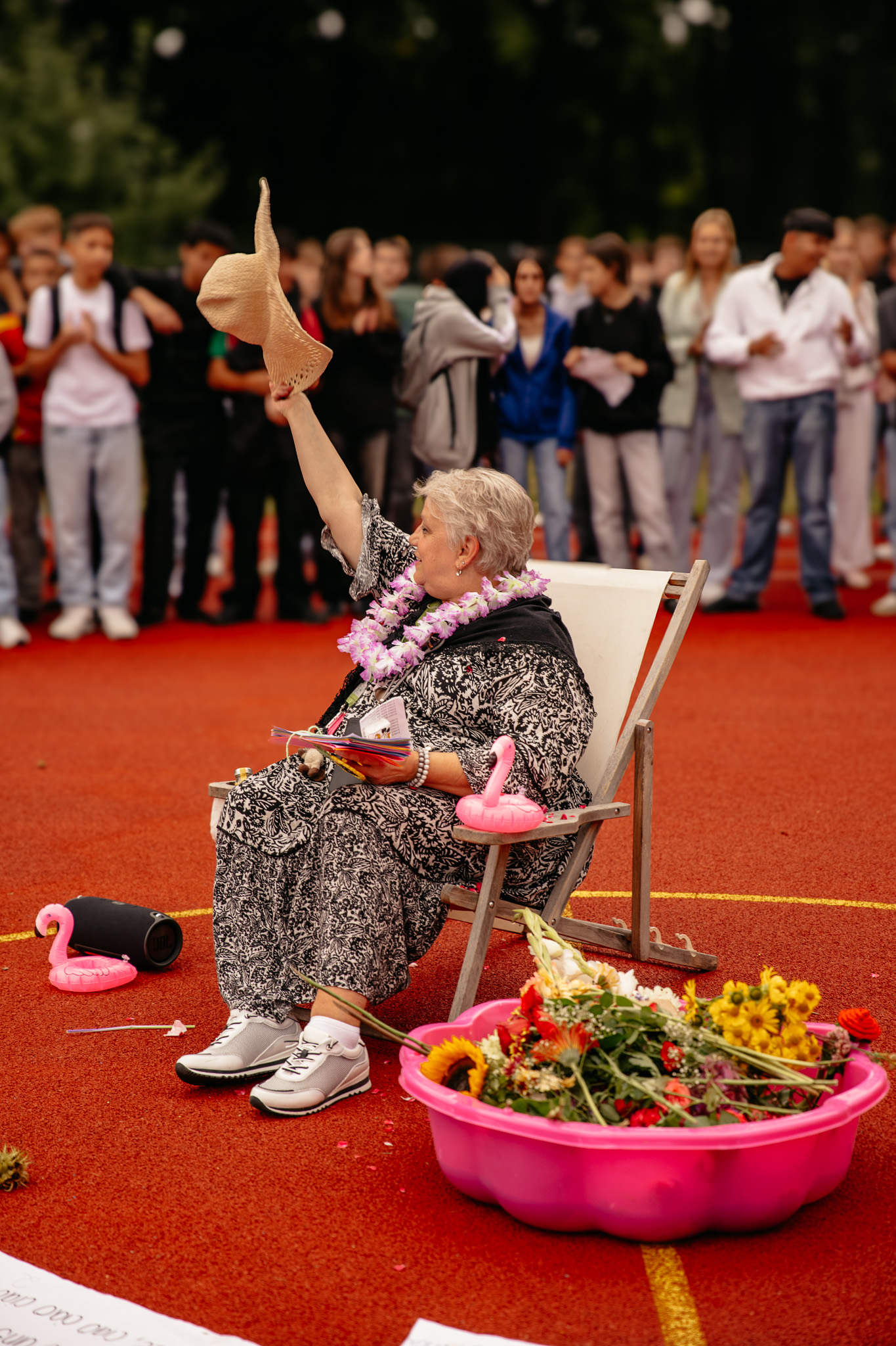 Am Freitag, den 30.08.2024, war es soweit: Unsere langjährige Sekretärin Angelika Wolf hatte ihren letzten Arbeitstag. Dieser konnte natürlich nicht einfach so enden. Die gesamte Schulgemeinschaft versammelte sich in der vierten Stunde auf dem Schulhof, um sich festlich zu verabschieden. Frau Wolf bekam einen Pool voller Blumen von allen Klassen, Karten mit guten Wünschen und ein heimlich eingeübtes Ständchen, begleitet von den Bläserinnen und Bläsern unter der Leitung von Frau Redeker.