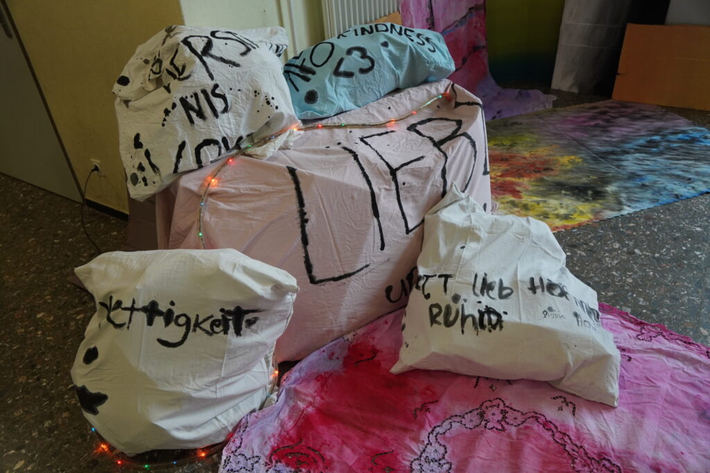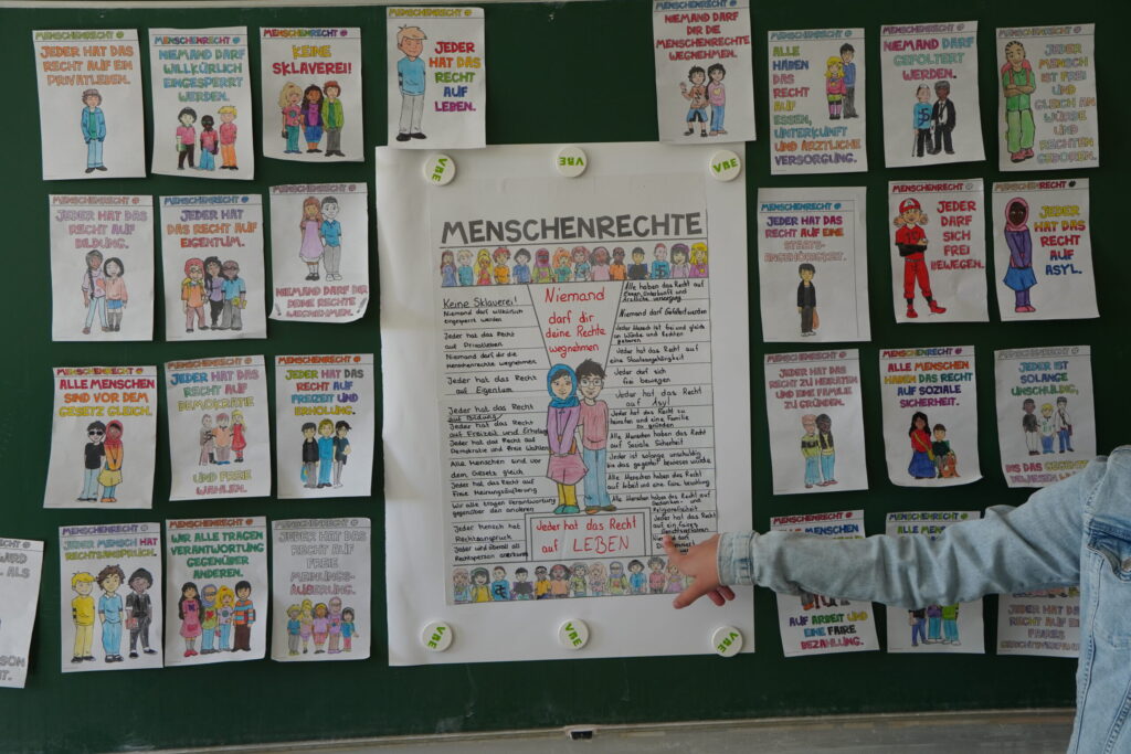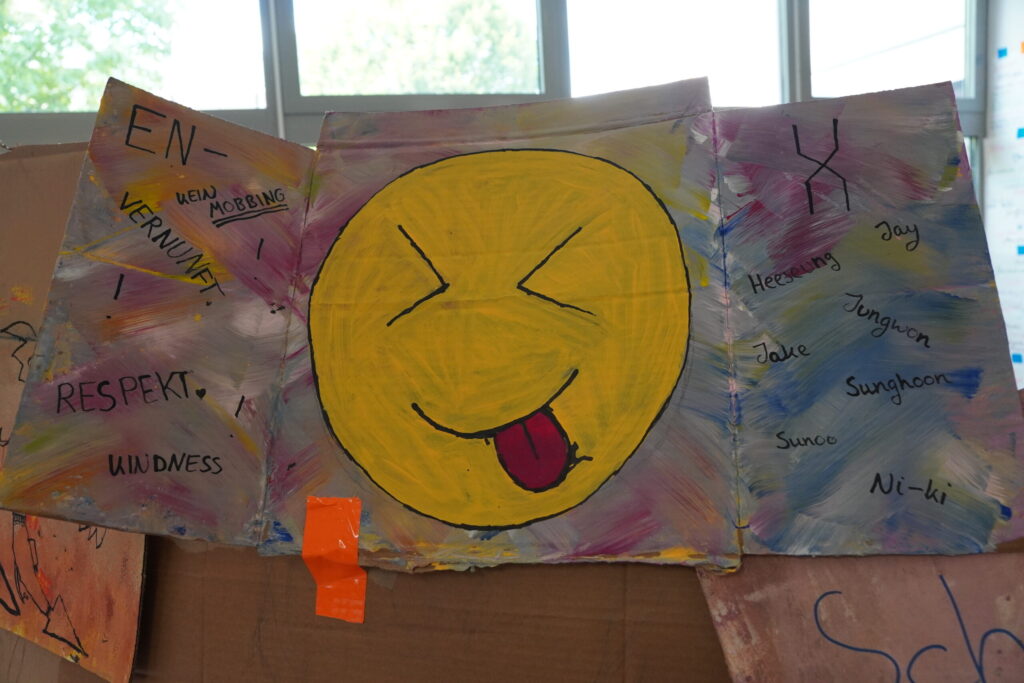 Dann ging es weiter mit einem abwechslungsreichen Schulfest. Die Schülerinnen und Schüler präsentierten die Ergebnisse der Projekttage rund um die Themen Zusammenhalt, Vielfalt und Toleranz. Es wurde gerappt, getanzt und Theater gespielt, man konnte ein Quiz lösen, selbst erstellte Videos ansehen oder Teil eines Solidaritätsbaums werden. Die Hotdogs vom Förderverein waren so gefragt, dass zwischendurch Nachschub besorgt werden musste.