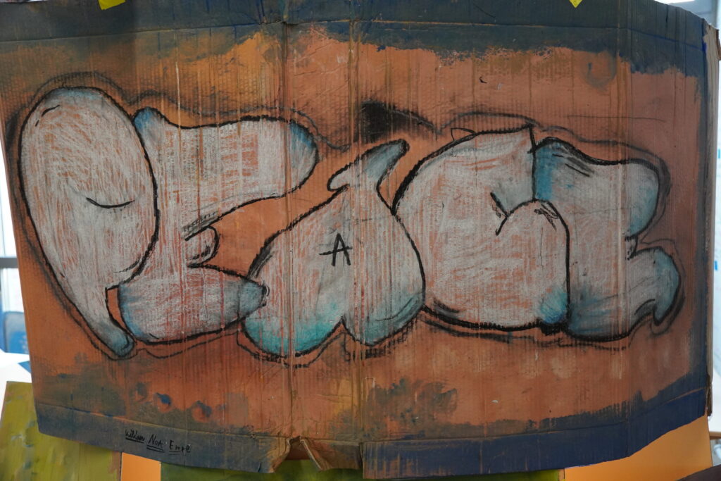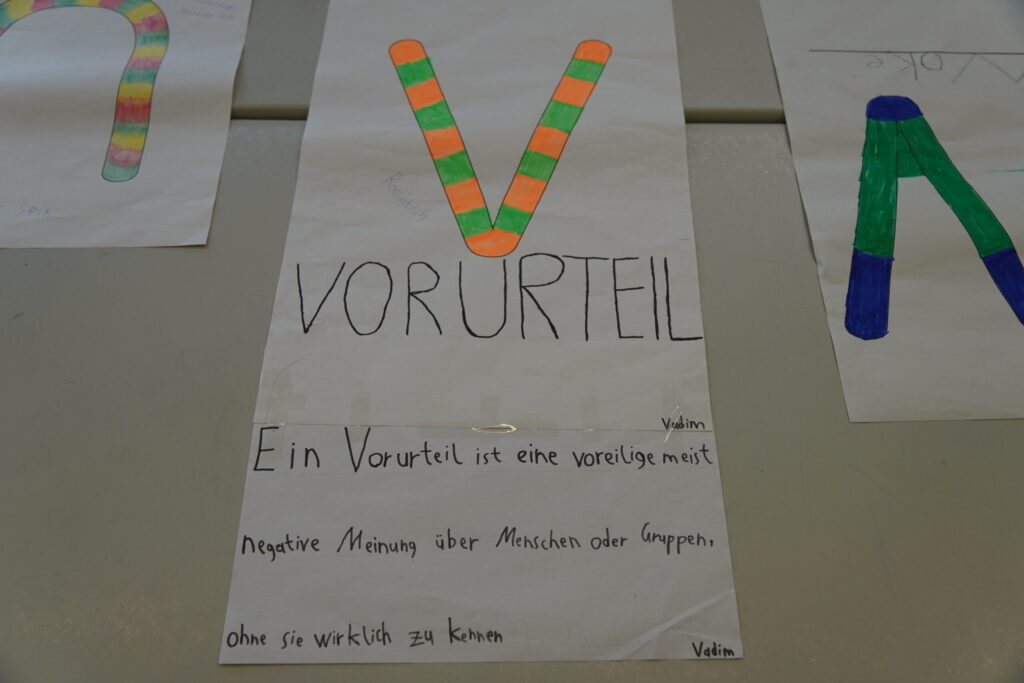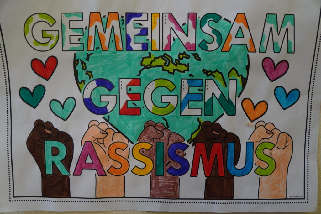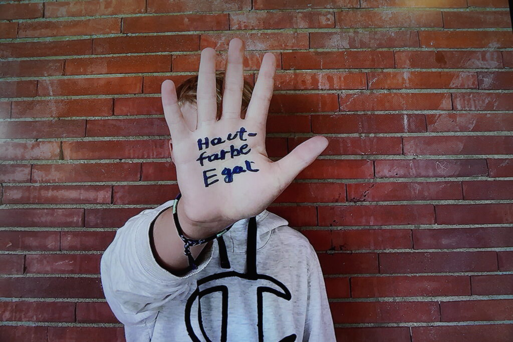 Der Tag begann mit einer großen Auftaktveranstaltung in der Sporthalle. Zur Einstimmung spielten, unter der Leitung von Frau Redeker, die Bläserklasse 6 und die Bläser-AG mit Unterstützung einiger Mitglieder des Nachwuchsorchesters Music on Fire des Feuerwehrmusikzuges der Stadt Bielefeld das Stück „Ode an die Freude“. Es folgten Reden von Frau Bruning und Herrn Kollmeyer, von unserer Schülersprecherin Favour und von unserem Paten Robin Wasyliw, dem Jugendleiter des TUS Jöllenbeck. Dieser machte deutlich: „Wenn euch auffällt, dass jemand wegen seiner Hautfarbe oder Herkunft gemobbt wird, habt den Mut, es anzusprechen. Guckt nicht weg, sondern tut aktiv etwas dagegen!“